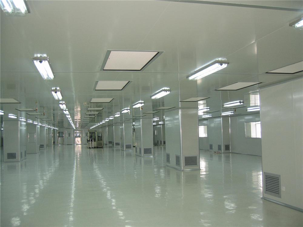 施工單位:凈化車間面積約為6000平方米,凈化要求為千級和萬級,空調(diào)系統(tǒng)方案采用冷水機(jī)組+潔凈空氣處理機(jī)組AHU+高效風(fēng)口處理方式,工程內(nèi)容含彩鋼板結(jié)構(gòu)裝修,潔凈空調(diào)系統(tǒng),工藝排風(fēng),環(huán)氧樹脂地板,LED照明系統(tǒng),空調(diào)配電及自控系統(tǒng),設(shè)計要求:溫度23±2℃,濕度55±5%,完工后各標(biāo)無塵室指標(biāo)均達(dá)到要求;完工后圖片如下: