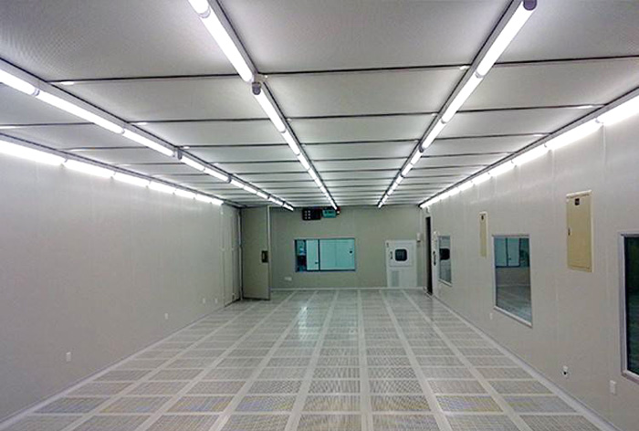 施工單位:凈化車間面積約為12000平方米,凈化要求為百級(jí),千級(jí)和萬(wàn)級(jí),空調(diào)系統(tǒng)方案采用冷水機(jī)組+潔凈空氣處理機(jī)組AHU+高效風(fēng)口處理方式,工程內(nèi)容含彩鋼板結(jié)構(gòu)裝修,潔凈空調(diào)系統(tǒng),工藝排風(fēng),高架地板,PVC地板及環(huán)氧樹脂地板,LED照明系統(tǒng),空調(diào)配電及自控系統(tǒng),設(shè)計(jì)要求:溫度23±2℃,濕度55±10%,完工后各標(biāo)無塵室指標(biāo)均達(dá)到要求;完工后圖片如下:
